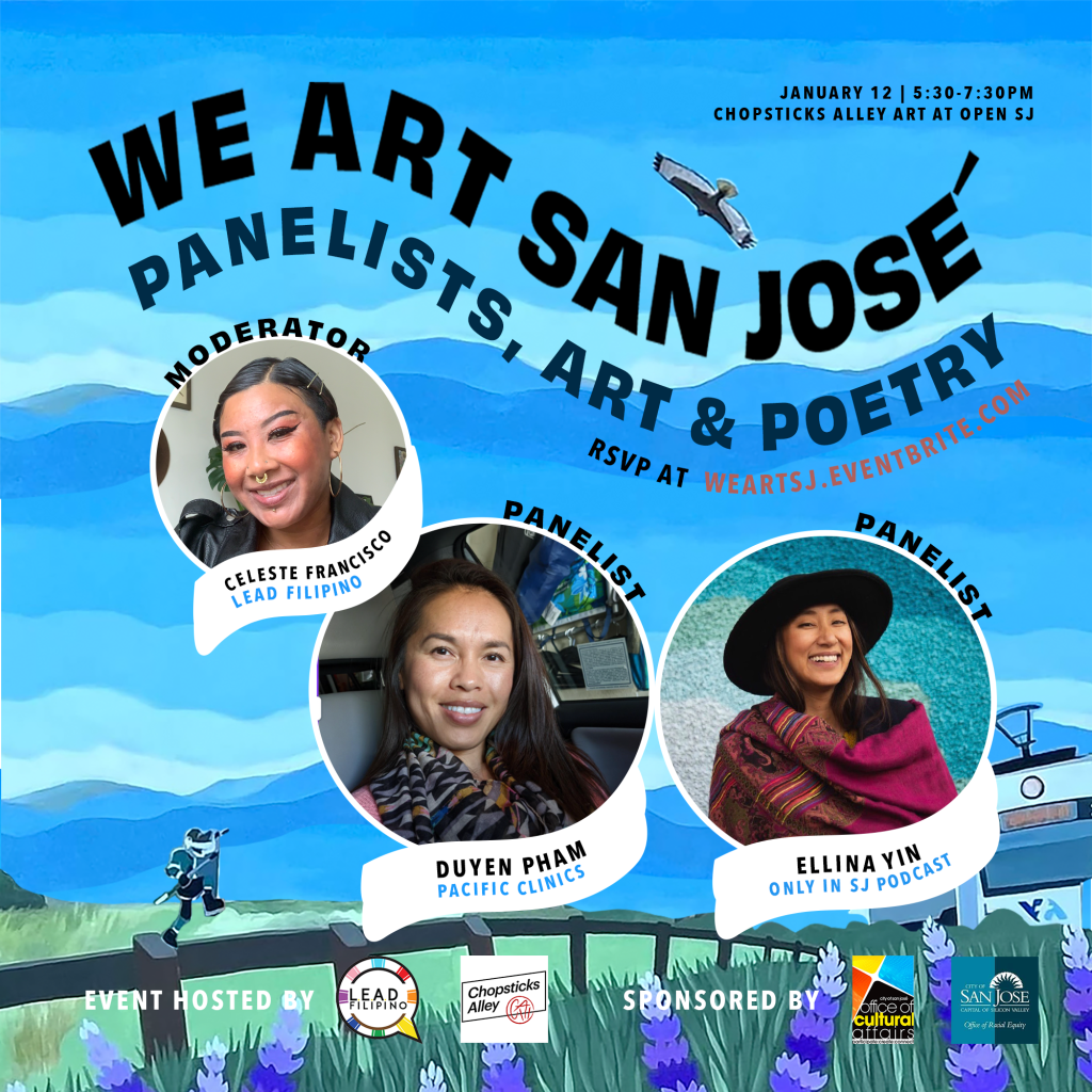 1.10.23 – We ART San José Collab with Chopsticks AlleyLEAD FilipinoJanuary 9, 2023Uncategorized LEAD Filipino We are a nonprofit that organizes for FilAm civic participation, grassroots leadership and direct community action out of San Jose, California. Articles: 412 Previous Post 1.9.23 - Legislative Update: 2023 California Trends Next Post 2023 FilAm Policy Symposium Stay Updated with Us Get our latest news, event updates, and opportunities and subscribe to our newsletter Subscribe