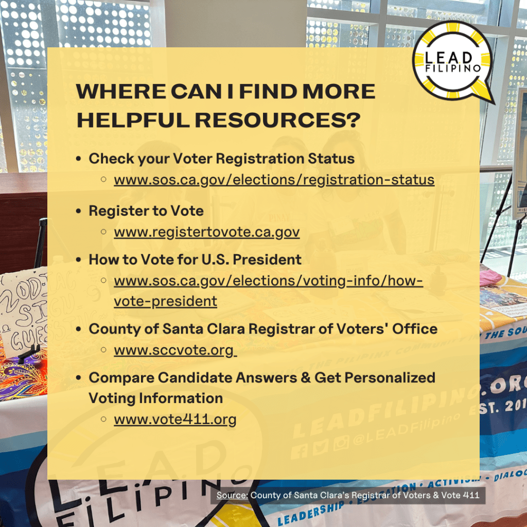 The elections hold immense significance in ensuring our voices are heard and represented. It’s crucial for our community to participate in shaping the future of our neighborhoods and communities. In Santa Clara County, there are an estimated ~150,000 Filipinas/xs/os…let’s show our numbers at the polls.
